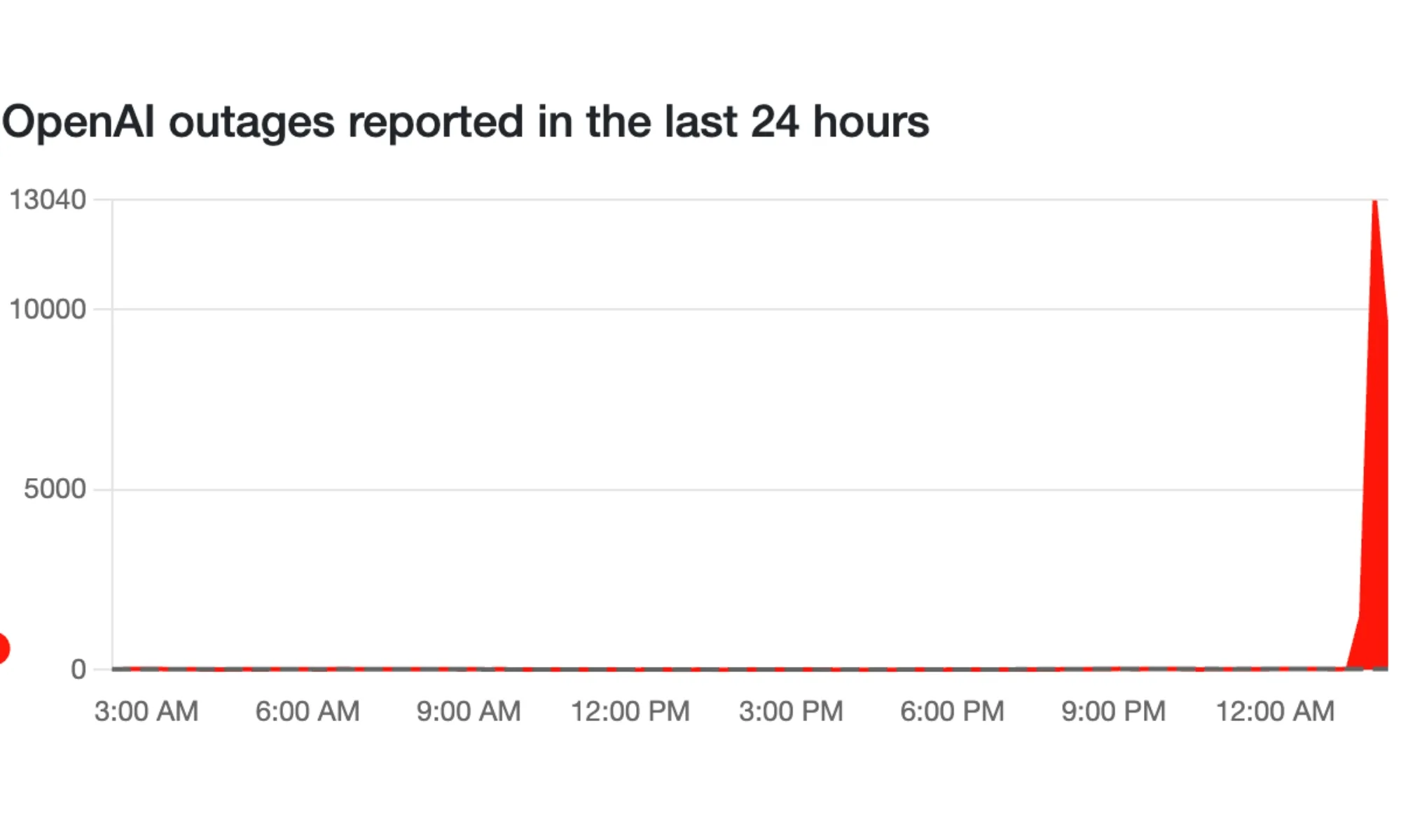 Os usuários começaram a relatar a interrupção em Detector de queda por volta das 12h08 PST. No momento da redação deste relatório, mais de 12.900 ocorrências foram relatadas na plataforma, 99% das quais relacionadas ao ChatGPT.