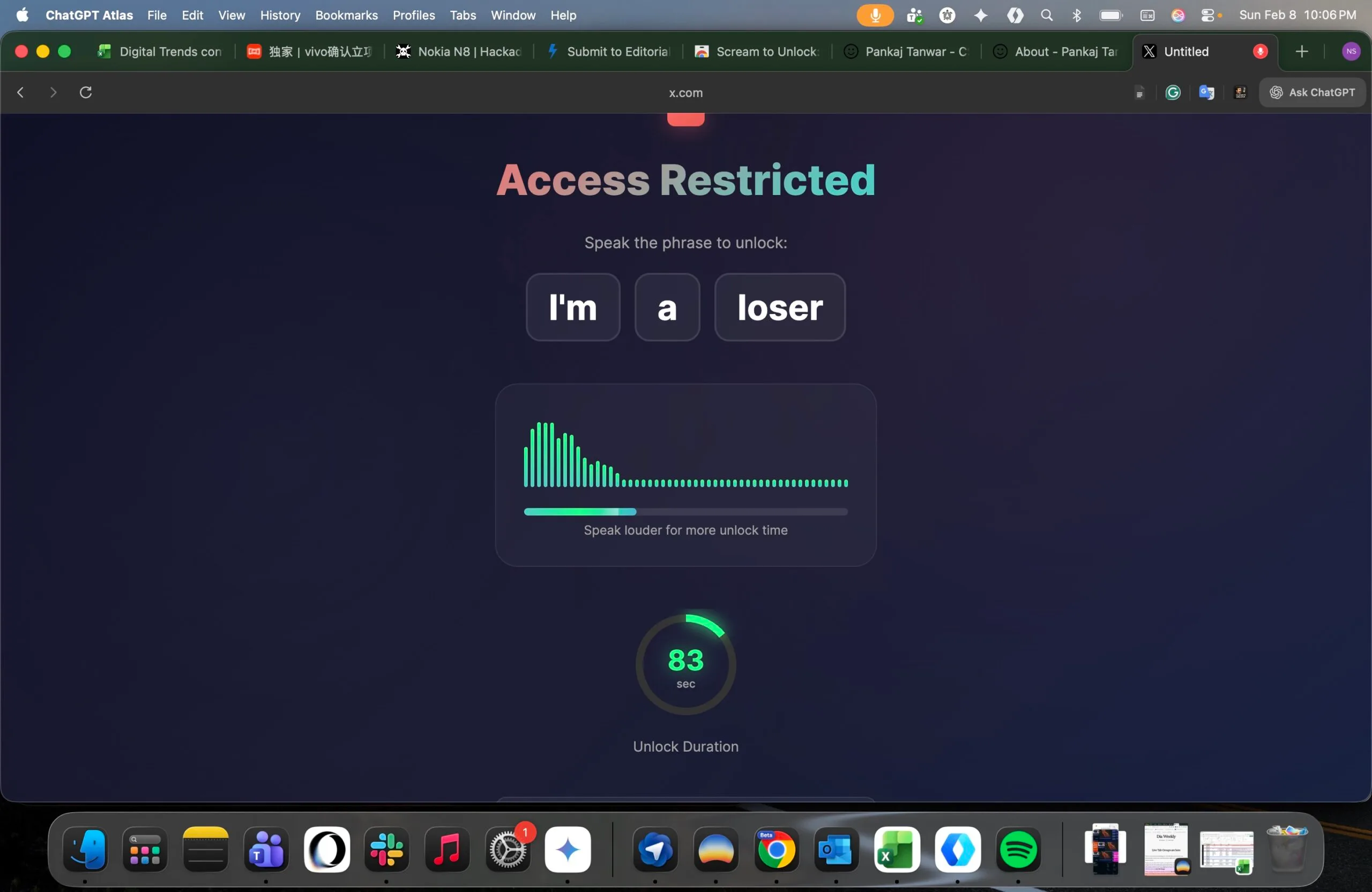 No que diz respeito à extensão do navegador “Scream to Unlock”, bem, eu precisava desesperadamente de uma solução como esta. Eu visito o X e o Reddit para pesquisar e coletar notícias, mas muitas vezes acabo perdendo muito tempo me distraindo com postagens aleatórias e tocas de coelho. Felizmente, a pouca honra que me resta me impede de gritar com meu PC e acordar meu gato.