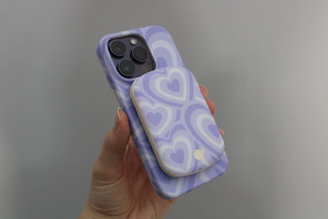 Os Energy Pods da Casely também podem ser combinados com os da marca capas de telefonecriando uma ilusão quase perfeita entre onde termina a capa do telefone e onde começa o Energy Pod. A combinação que testei foi o mais lindo padrão de coração lavanda, carinhosamente apelidado de “Love Track” para o Dia dos Namorados. Como alguém que aprecia quando os produtos podem oferecer estilo e sustento, Casely supera o apelo estético.