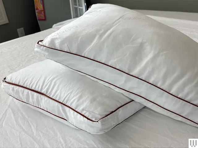 Travesseiros de resort sempre parecem muito macios ou muito firmes. As almofadas de látex Saatva incluído neste pacote pretendem ser um bom meio-termo. Descobri que a opção de loft padrão é muito piegas, o que não é uma coisa ruim, mas você tem que se conhecer como dorminhoco para decidir se é o melhor para você. Se você preferir um loft mais alto porque dorme de lado, tem ombros mais largos ou deseja preservar o alinhamento cervical, está disponível uma opção de loft mais alto (cerca de 15 a 18 cm). Quanto ao loft padrão (4 a 5 polegadas), sou um dorminhoco combinado que adora um travesseiro mais plano e maleável que se adapte a mim, quer eu durma de lado, de bruços ou de costas.
