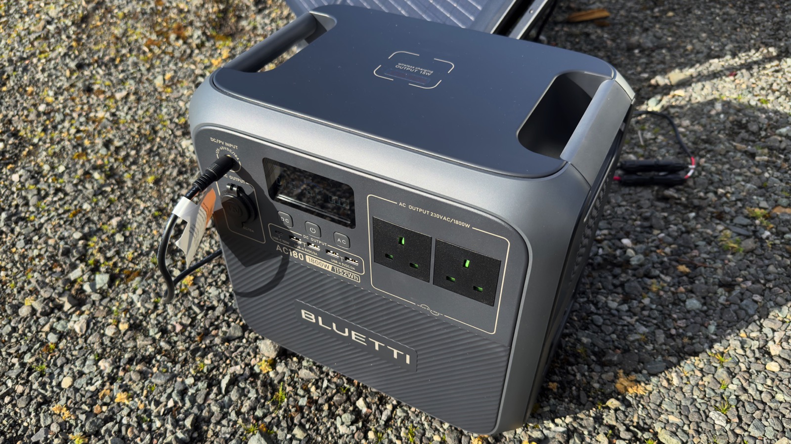 Para carregamento photo voltaic, usei um Painel Bluetti de 120W (também atualmente com 33% de desconto), que proporcionou um desempenho excepcional mesmo sob o sol fraco da primavera no Reino Unido, sentindo a estação de energia próxima da potência nominal máxima. Este painel photo voltaic robusto com classificação IP68 é a maneira mais econômica de manter a estação de energia abastecida quando estiver fora da rede.