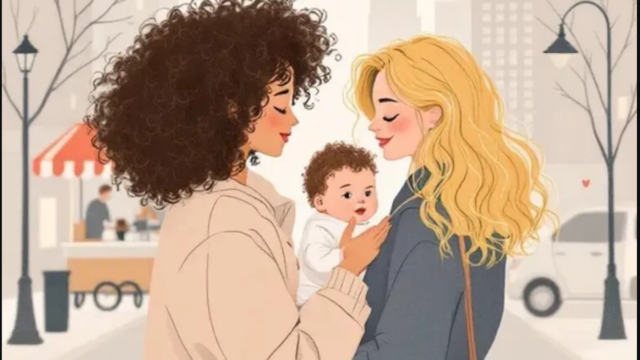 Esta foi a primeira sugestão que dei: “Crie uma imagem de duas mulheres, uma com cabelos castanhos cacheados e outra com cabelos loiros, segurando seu bebê enquanto caminham pelas ruas de Nova York”.