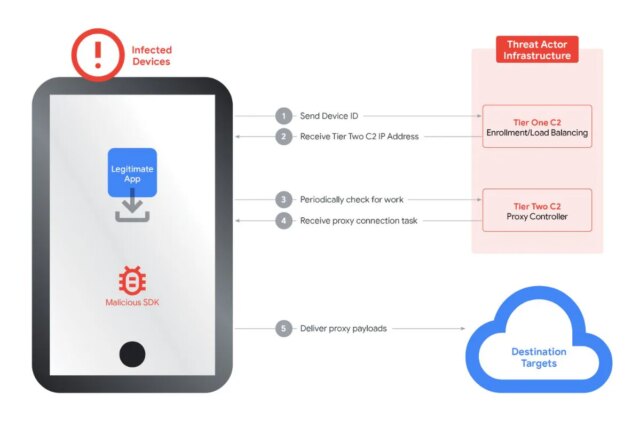 A postagem do weblog destacou que a operação se espalhou por meio de uma coleção de aplicativos Android maliciosos e software program proxy em PCs com Home windows. Os aplicativos foram distribuídos fora das lojas de aplicativos oficiais, bem como por meio de plataformas de terceiros, e incluíam mecanismos para persistir em segundo plano enquanto continuavam a retransmitir o tráfego. O Google disse que a funcionalidade de proxy do malware period muitas vezes invisível para os usuários e, em muitos casos, a rede funcionava sem qualquer consumo óbvio de bateria ou uso de dados que pudesse ter alertado os proprietários dos dispositivos.