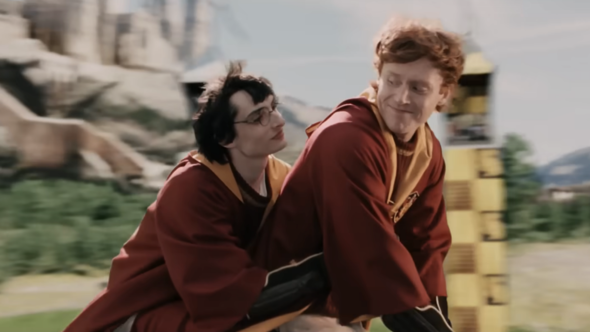 No esboço, apelidado de Heated Wizardry, Harry (Finn Wolfhard) e Ron (Ben Marshall) mergulham em um tórrido romance de Hogwarts, com o trailer falso fazendo de tudo para esclarecer que todos os envolvidos têm mais de 18 anos. “Hogwarts é basicamente uma faculdade agora”, explica o narrador de forma prestativa. Trama? História? Construção de mundo? Irrelevante. Estamos aqui para assistir dois bruxos gostosos se beijando.