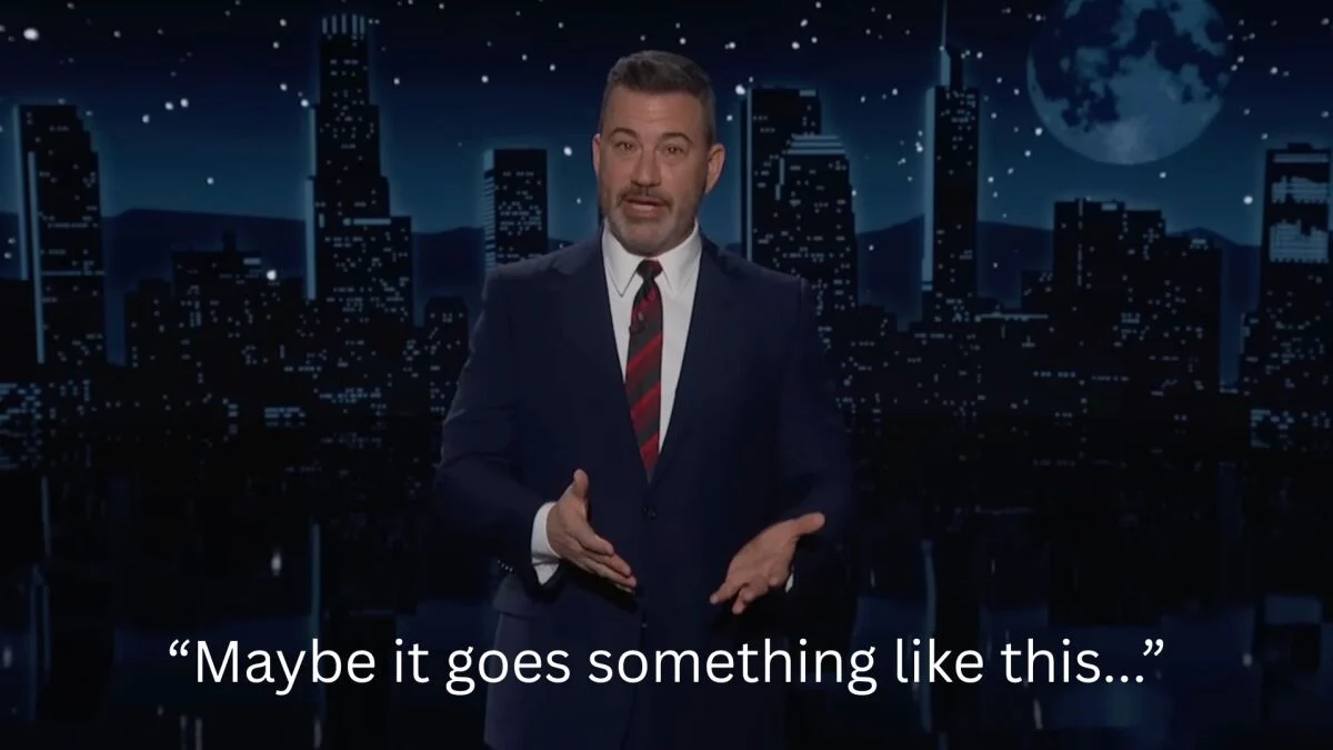 “Nunca acreditei que exista um grande plano mestre, mas talvez exista”, diz ele no Jimmy Kimmel ao vivo! monólogo acima.