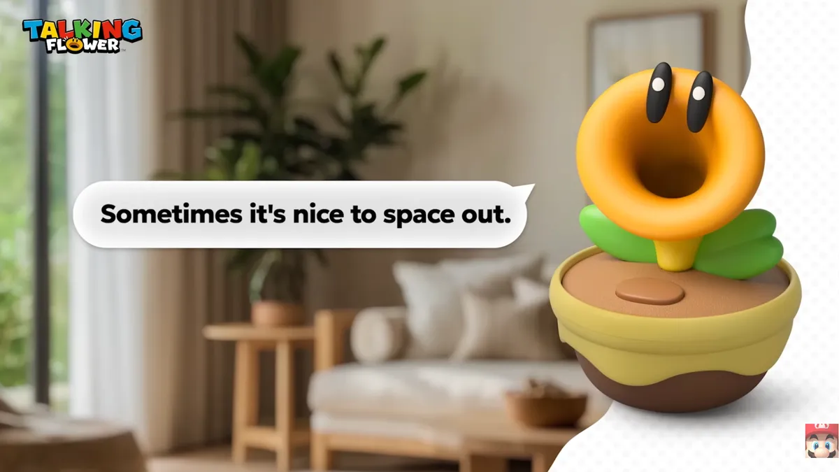 Speaking Flower foi divulgado no ano passado e todos os detalhes surgiram hoje no Nintendo Speaking Flower, uma recriação falante das flores úteis/irritantes/encantadoras que apareceram por todo lado no Tremendous Mário Maravilha jogo. É um pequeno vaso de flor com cabeça de trombeta que fala com você, não com você.