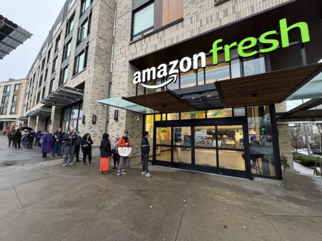 Uma fila de mais de 30 pessoas se estendia da porta da loja Amazon Recent na rua 23 com a Jackson durante grande parte da tarde, diminuindo e fluindo enquanto os funcionários permitiam a entrada de 15 clientes de cada vez. Muitos esperaram mais de 30 minutos. Foi uma despedida inesperada para uma experiência de varejo baseada na promessa de agilizar as compras de supermercado.