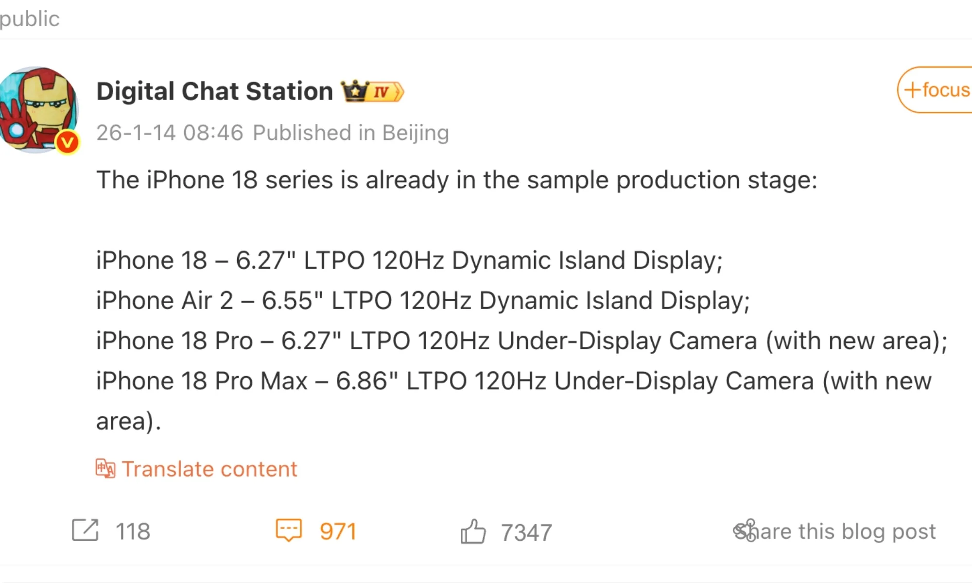 Já se passaram cerca de quatro meses desde o lançamento do iPhone 17, e rumores sobre a série iPhone 18 já começaram a surgir. O mais recente vem do informante chinês Digital Chat Station (through Weibo), lançando alguma luz sobre as especificações de exibição de toda a linha.
