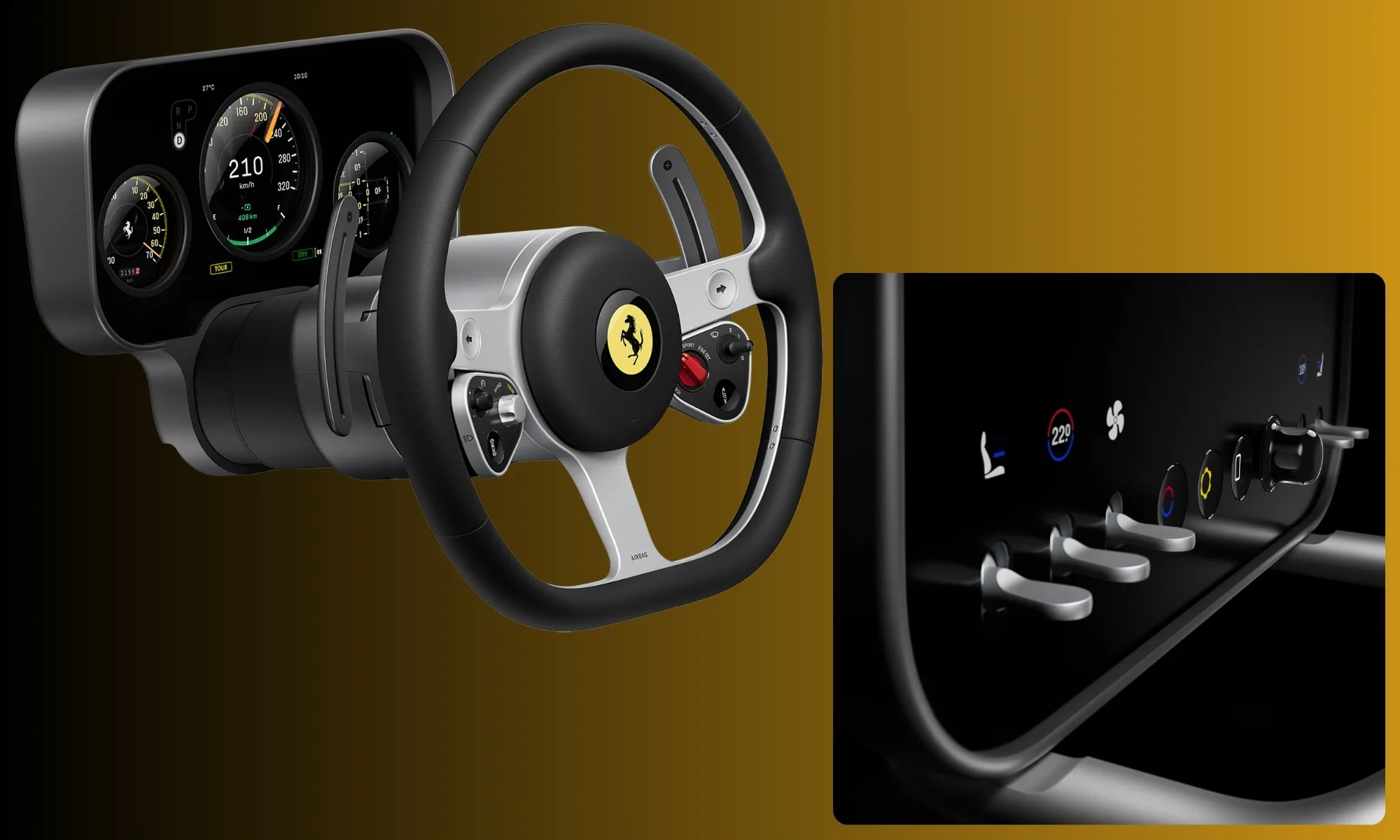 A Ferrari diz que ambas as empresas trabalharam durante cinco anos para projetar o carro e os resultados são impressionantes. O toque de Ive também reflete seu trabalho na Apple, trazendo aparência metálica limpa, cantos arredondados e uma fusão perfeita de vidro e outros materiais luxuosos na cabine. O que é notável é o foco nas entradas analógicas, em vez de um cockpit totalmente digital, um princípio que foi adotado pela Mercedes-Benz e pela BMW.