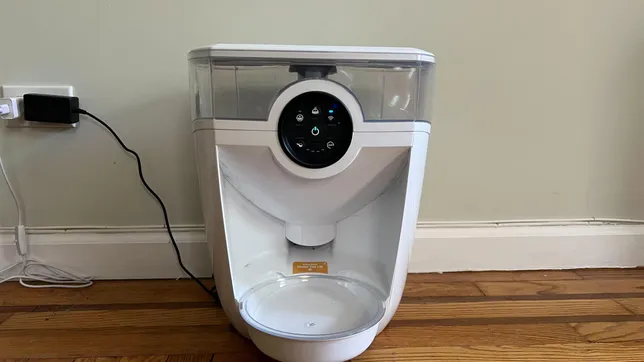 Fora da caixa, o Whisker Feeder Robotic tem uma aparência elegante, mas um pouco grande em comparação com outros que experimentei. Eu estava preocupado que pudesse ser muito desajeitado para meu pequeno apartamento em Nova York, mas combinava muito bem com minha sala de estar, sem atrapalhar a estética.