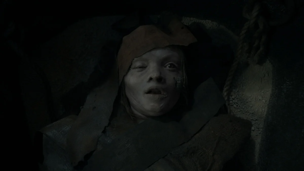 Essa criança é Katie (Natalie Grace). Ela desapareceu em uma viagem ao Egito com seus pais (Jack Reynor e Laia Costa) oito anos antes, apenas para aparecer repentinamente em um sarcófago.