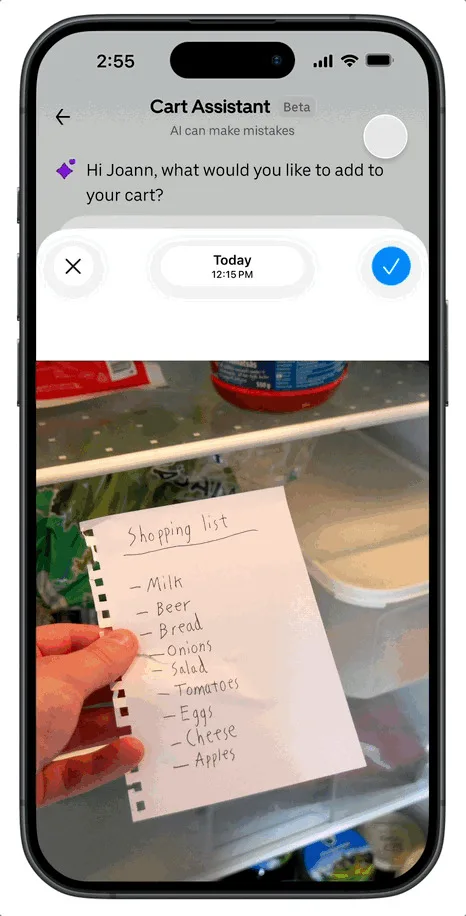 O Cart Assistant foi desenvolvido para o momento em que você já sabe o que precisa. Cole suas anotações de compras ou carregue uma imagem, incluindo uma foto de itens manuscritos ou uma captura de tela dos ingredientes da receita, e o aplicativo traduz isso em opções que podem ser compradas.