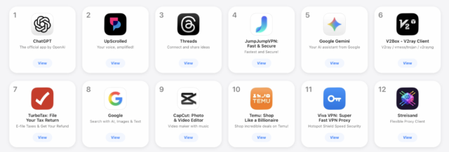 Os gráficos da App Retailer no momento em que este artigo foi escrito.