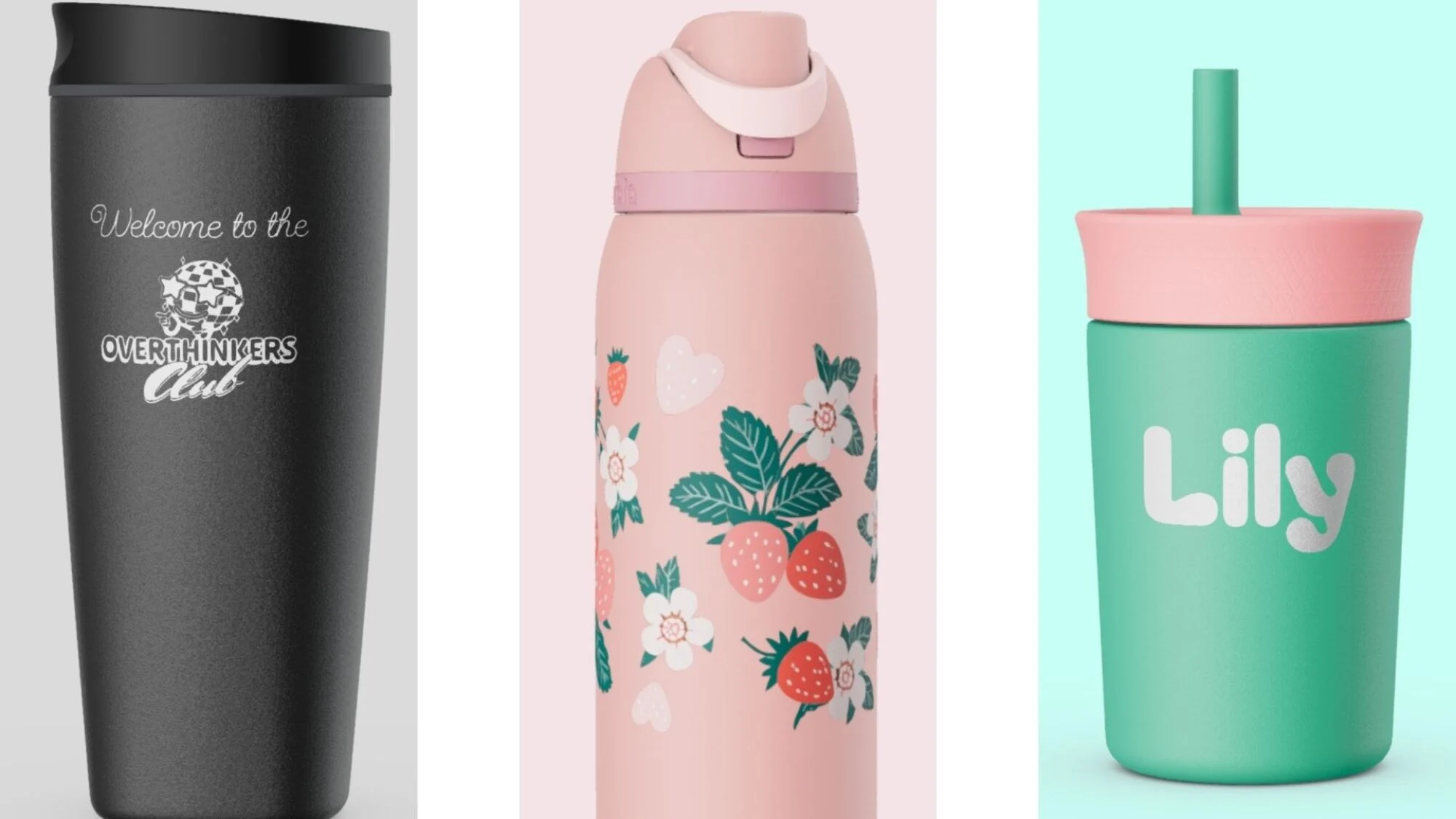 Compre qualquer garrafa Owala ou tigela para animais de estimação e agora você pode optar por gravar, imprimir ou adicionar uma capa completa à sua garrafa de água. E talvez o melhor de tudo é que essa adição custa apenas US$ 10. Veja como criar sua própria garrafa Owala de suporte emocional. Lembre-se de que criar uma garrafa personalizada para um amigo pode ganhar o prêmio de melhor presente.
