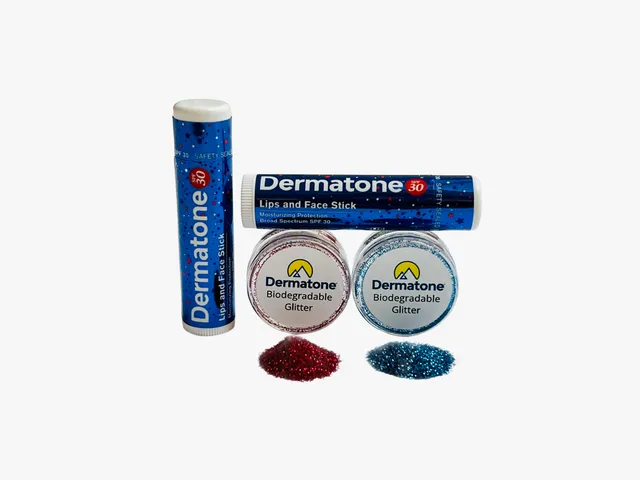 Antes de cada corrida, Diggins passa um pouco de brilho nas bochechas para se lembrar de sorrir e aproveitar o passeio. “É para ser divertido!” Ela usa o glitter biodegradável da Dermatone; seu equipment Lips & Face: Snow/Ski inclui dois mini bálsamos, potes de glitter vermelho e azul e quatro estênceis com tema de esqui.