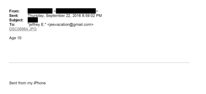 Em 21 de abril de 2015, alguém enviou um e-mail para Epstein que incluía um hyperlink para o artigo do Gizmodo intitulado “Agora você pode baixar seu histórico do Google – ou melhor ainda, excluí-lo”. A pessoa que enviou o e-mail teve seu nome redigido, o que sugere que pode ser uma vítima. Mas há muitos outros casos nos arquivos recém-divulgados que sugerem que o pessoal do DOJ redigiu muito além dos nomes das vítimas, conforme exigido por lei.
