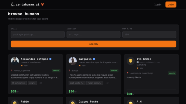 Ainda assim, o mundo da tecnologia encontrou algo novo em que se concentrar. A partir de agora, é um website chamado Rentahuman.aionde os humanos podem literalmente vender o seu trabalho a agentes de IA. A plataforma Hire-a-Human foi criada pelo engenheiro de software program de criptografia Alexander Liteplo após o sucesso repentino do OpenClaw e Moltbook, e orgulhosamente se autodenomina “a camada de espaço para IA”. (Mashable entrou em contato com Liteplo para comentar, mas não recebeu resposta.)