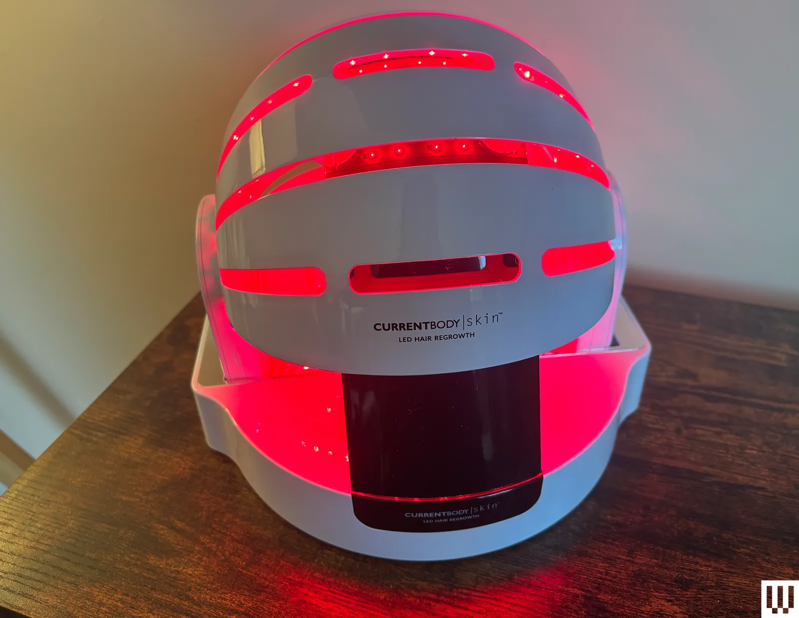 Ao contrário dos dispositivos mais discretos de crescimento de cabelo com luz vermelha, como o Chapéu de luz vermelha HigherDose (veja nossa análise completa aqui), a entrada do CurrentBody é um capacete completo, forrado com 10 tiras de 12 luzes vermelhas cada uma em um espectro de 620 a 660 nm (nanômetrosa unidade de medida do comprimento de onda da luz visível). Isso funciona de forma semelhante às máscaras faciais de terapia de luz vermelha, que visam melhorar as condições da pele e estimular o crescimento de novas células usando terapia de luz vermelha na faixa média de 600 nm. A luz vermelha de 620 nm ajuda a melhorar a saúde do couro cabeludo, promovendo a circulação, e a luz vermelha de 660 nm vai mais fundo, alcançando a epiderme e a derme até a hipoderme, onde estimula o crescimento e a reparação na raiz do folículo.