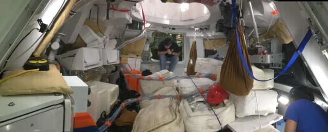 Se o sol entrar em erupção, a tripulação pode se abrigar em um compartimento abaixo do piso da cápsula, cercado por bolsas de armazenamento que proporcionam proteção. A NASA contará com satélites de monitoramento photo voltaic para alertas antecipados. Os astronautas praticarão a construção do abrigo de radiação durante a missão, independentemente de surgir uma emergência.