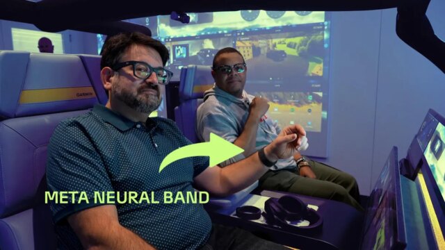 Garmin e Meta demonstram como a banda EMG da Meta poderia funcionar na cabine de um carro inteligente conectado. Demos uma volta no salão da CES.