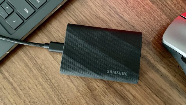 T9 tersedia dalam konfigurasi 1TB, 2TB, dan 4TB, serta ringkas dan tebalnya hanya setengah inci. Itu dilapisi dengan bahan karet yang cukup tahan lama untuk dibawa-bawa, sekaligus mendukung enkripsi 256-bit dan kecepatan baca dan tulis yang diiklankan hingga 2.000 MB/s. Kecepatan ini cukup cepat untuk kasus penggunaan tingkat lanjut, seperti menjalankan game langsung dari drive.
